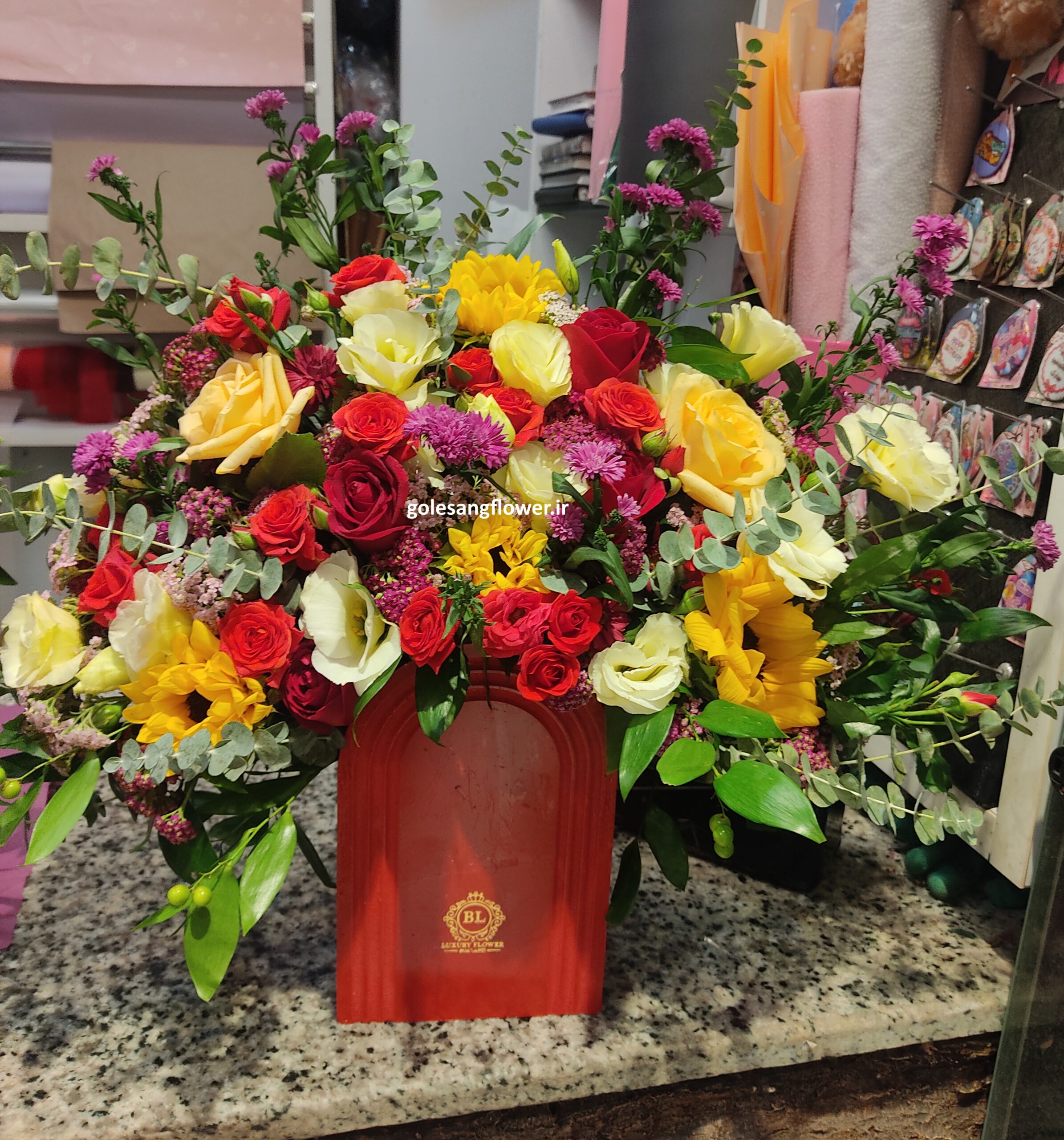 گلها : رز مینیاتوری، آفتاب گردان، رز، لیسنتوس
